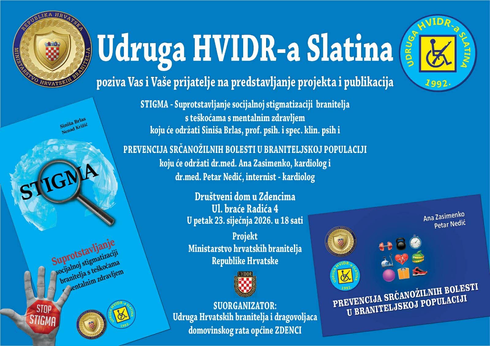 Slijedom toga će 23. siječnja 2026. godine u 18 sati u Društvenom domu u Zdencima biti održana nova u nizu specifičnih edukacija branitelja o važnosti očuvanja zdravlja i prepoznavanju rizika za mentalno i tjelesno zdravlje. Edukaciju će provesti profesor psihologije i specijalist kliničke psihologije Siniša Brlas, kardiologinja Ana Zasimenko i internist-kardiolog Petar Nedić. Ova suradnja pokazuje kako stručnjaci različitih profila u sinergiji mogu doprinijeti učinkovitijoj skrbi o zdravlju ove vrlo ranjive populacijske skupine.