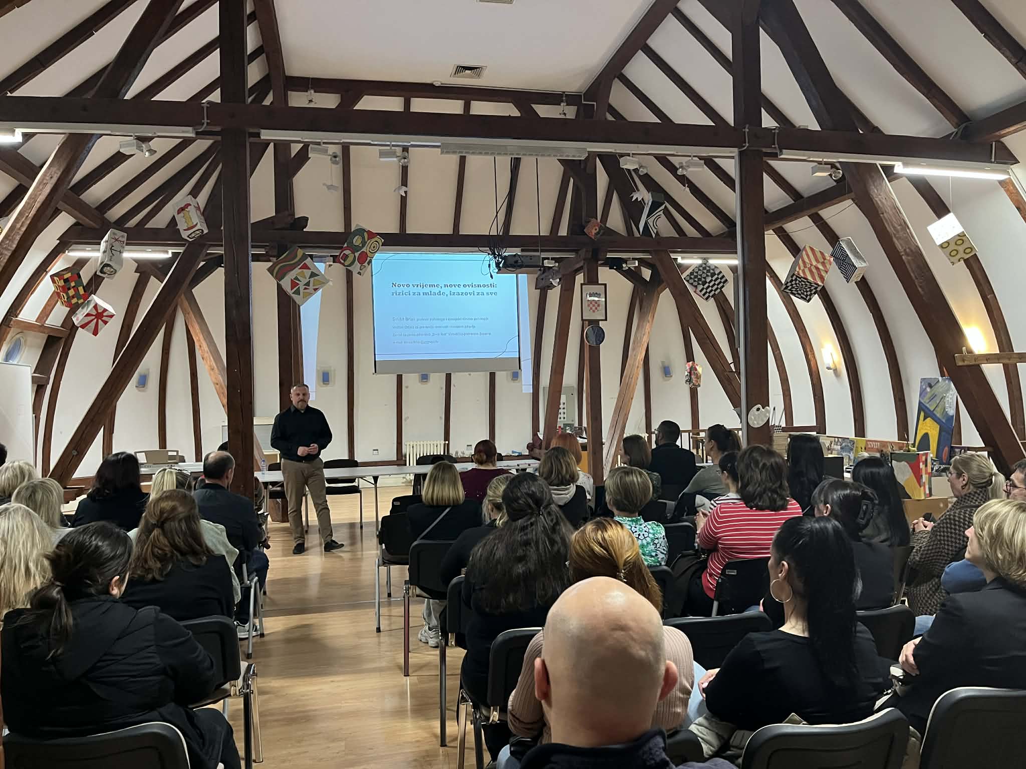 U srijedu 11. ožujka 2026. godine u Gimnaziji Bjelovar provedena je edukacija roditelja učenika o novim ovisnostima pod nazivom „Novo vrijeme, nove ovisnosti; rizici za mlade, izazovi za sve“. Edukaciju je proveo profesor psihologije i specijalist kliničke psihologije Siniša Brlas, a organizirana je u Tjednu psihologije koji je ove godine posvećen mentalnom zdravlju. Kupola u potkrovlju bjelovarske Gimnazije bila je skoro i premala za sve one koji su željeli nešto čuti o rizicima novih ovisnosti među mladima.
