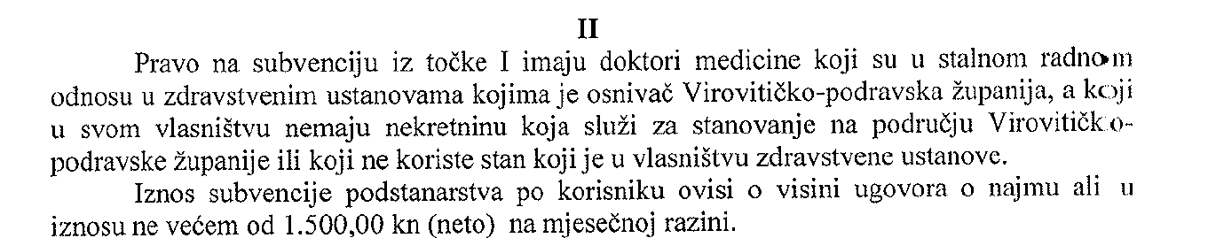 Javni poziv za subvenciju troškova podstanarstva doktorima medicine zaposlenim u zdravstvenim ustanovama kojima je osnivač Virovitičko-podravska županija